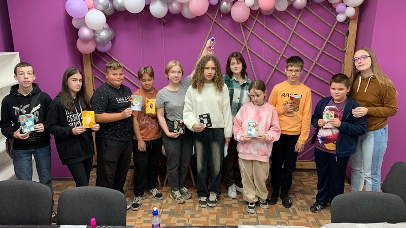 Затем добровольцы успели порадовать мастер-классами детей, находящихся на лечении в областной детской клинической больнице. Они создали блокноты для магических записей и космические панно.