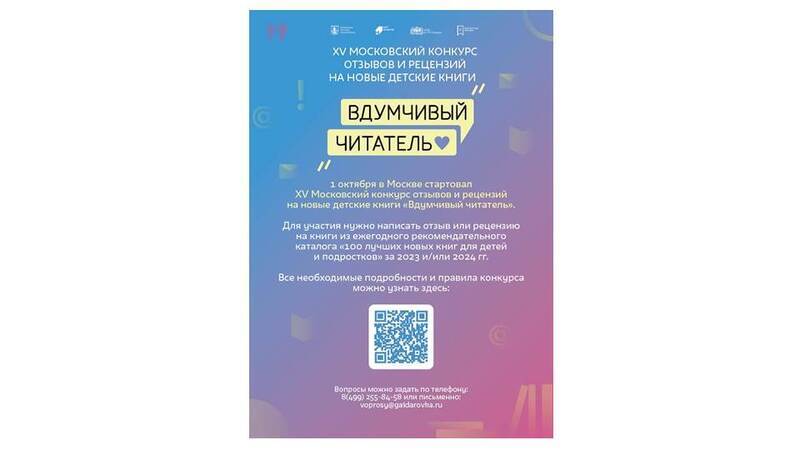 Контакты: Куратор Конкурса – Далецкая Мария Эдуардовна, ведущий методист ЦГДБ им. А.П. Гайдара, +7(499) 255 84 58.