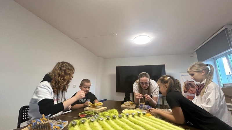 Затем волонтеры показали, как можно на обычной раме изготовить маленькие коврики из ниток. Участникам мероприятия понравилась необычная технология изготовления мягкого коврика, ведь для работы не нужно наличие больших станков, а всего лишь небольшая рама, пряжа и ножницы.
