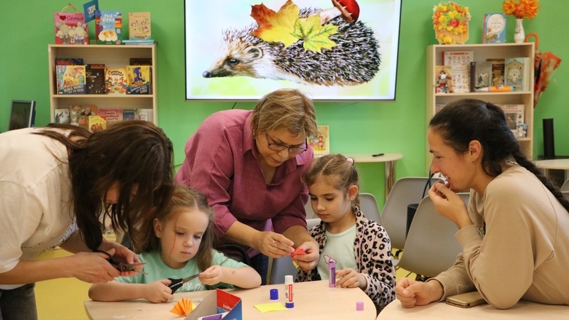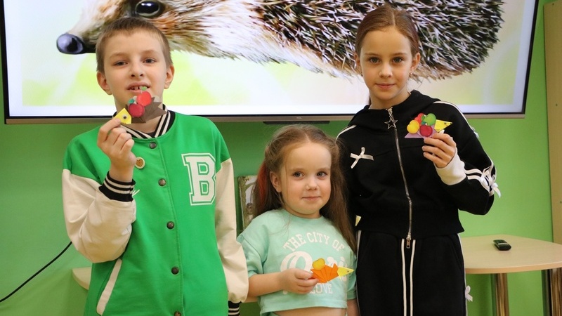 В отделе детского чтения золотыми цветами осени не ограничились. Юные участники хобби-клуба «Мастерим что хотим» делали забавных ежиков из цветной бумаги – розовых, сиреневых, зеленых, ярких и позитивных. Прежде чем сложить ежиков-оригами, ребята узнали, почему те носят на спине яблоки, чем занимаются осенью, и как готовятся к зиме. Познакомились со сказками про колючих зверьков, которые написали для ребят Андрей Усачев «Жили были ежики», Тамара Крюкова «Крошка ежик» и Джон Роу «Обнимите меня, пожалуйста!»
