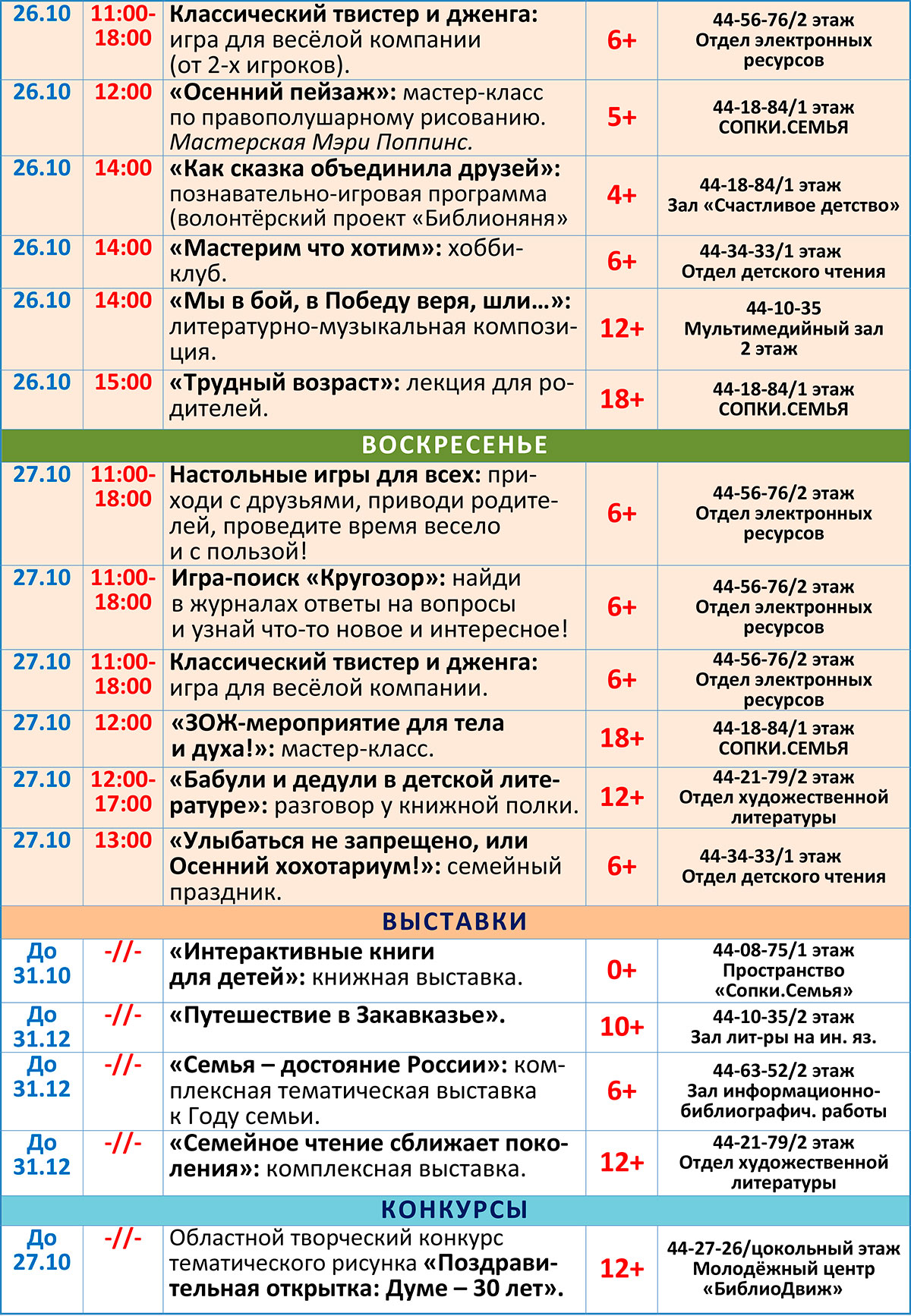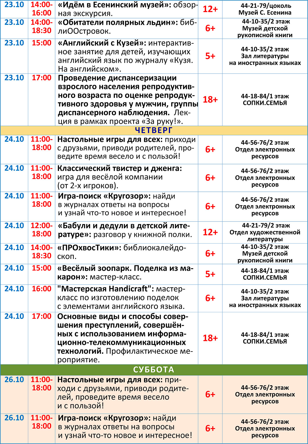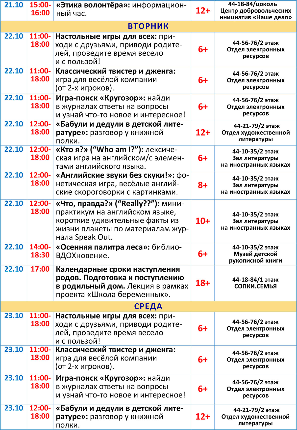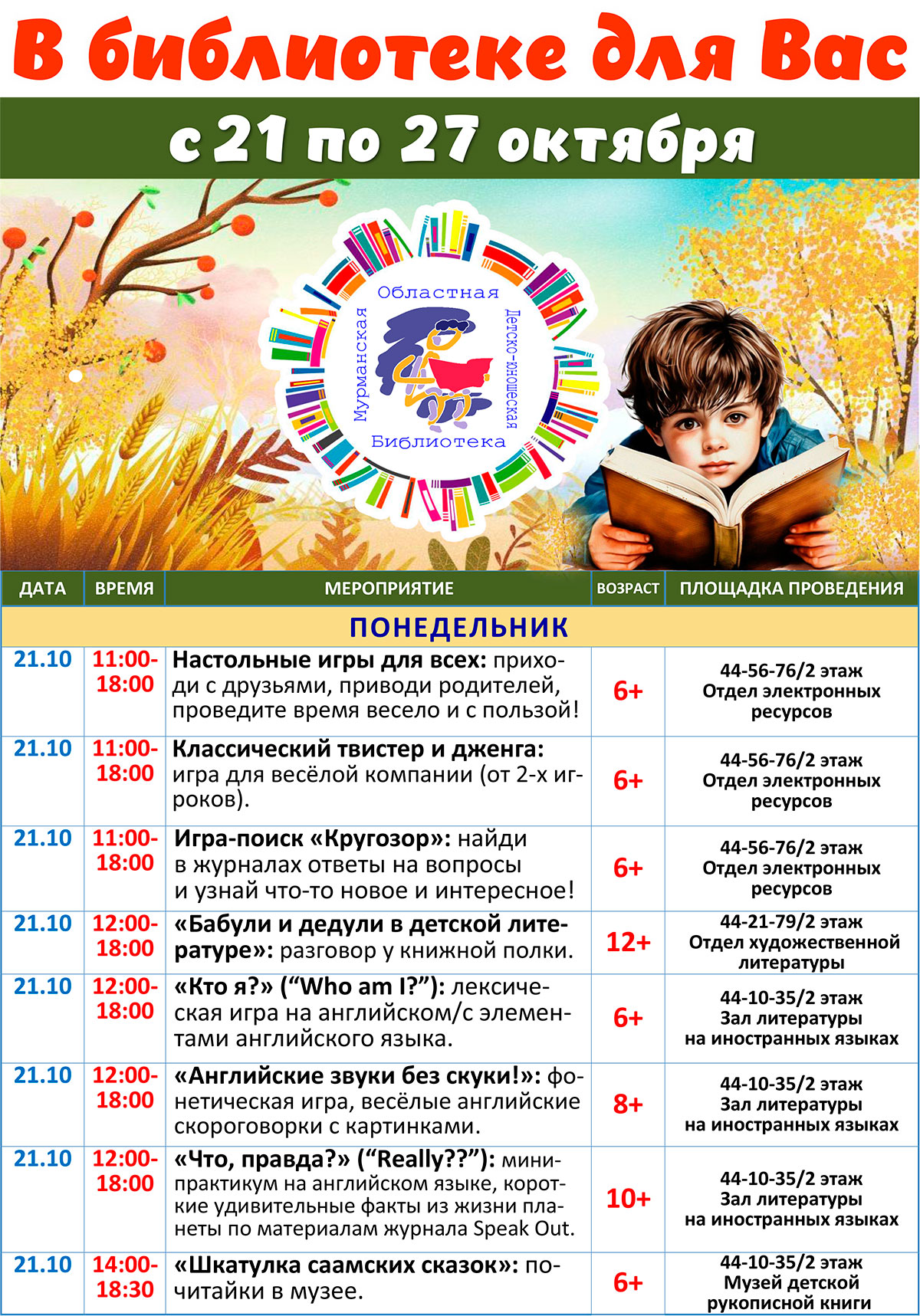 Знакомим с афишей мероприятий, которые подготовила для вас областная детско-юношеская библиотека с 21 по 27 октября