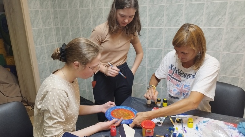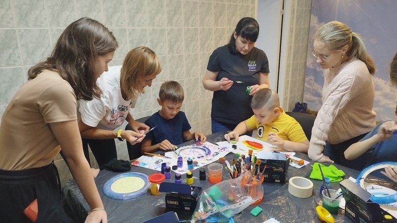 Для ребят был проведен творческий мастер-класс «Космическая феерия». Волонтёры помогли детям создавать панно в стиле космоса из акриловых красок. У каждого получилась своя планета – у кого-то с марсианскими просторами, у кого-то с высокими горами и реками. Работы велись в технике текстурной живописи и напыления. Творческое занятие принесло много положительных эмоций и блеска в глазах.