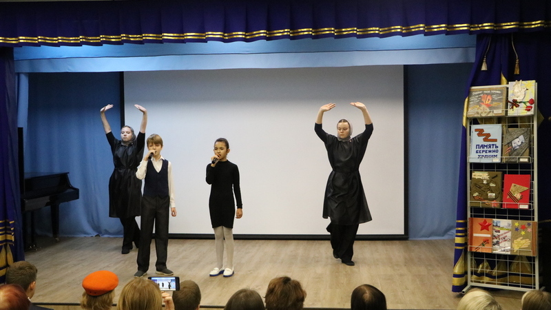 Со сцены звучали проникновенные стихи и песни, рассказывающие о трудных военных годах. Школьники и преподаватели из нескольких общеобразовательных учреждений города Мурманска исполнили самые известные произведения о войне.