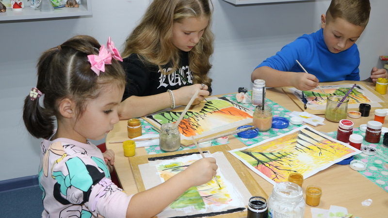 Золотая осень – чудесная пора. Каждый день мы видим изменения в природе. Одни краски сменяются другими. Это чудесное состояние попытались передать юные художники. Работы получились яркими и красочными. Было очень увлекательно и весело!
