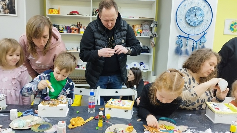 Работы требовали особого старания, так как выполнялись в сложной технике декупаж. Сотрудники и волонтеры библиотеки помогли гостям справиться с заданием. В конце занятия у каждого в руках оказалась необыкновенная «шкатулка счастья». Кто-то из детей решил подарить работу, созданную своими руками, самым любимым людям – родным и близким.
