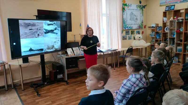 Ребятам рассказали о начале боевых действий на Кольском Севере, трудностях, с которыми сталкивались бойцы и о героических подвигах наших солдат во время войны. Школьники посмотрели анимационный фильм о подвиге юного героя Саши Ковалева, прослушали рассказ об отважных летчиках Борисе Сафонове и Захаре Сорокине, вспомнили подвиг нашего земляка Анатолия Бредова.