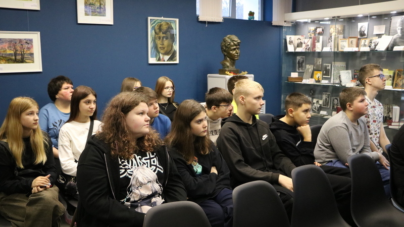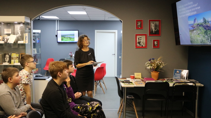 Ребята узнали об истории создания первого школьного музея Сергея Есенина, этапах его полувековой истории, поиске материалов по теме «Есенин и Север». Поездка Сергея Есенина на Север, которая состоялась летом 1917 года, до сих пор остается «белым пятном» в биографии поэта. Школьники познакомились с основной экспозицией и представленными в музее коллекциями. Конечно, рассказать обо всем за время одной экскурсии было невозможно, но мы надеемся, что эта встреча станет началом долгой дружбы между музеем поэта и школой, которой Валентина Евгеньевна отдала 40 лет жизни и которая ,уверены, в скором времени будет гордо носить ее имя.