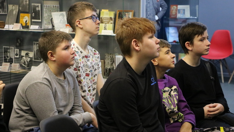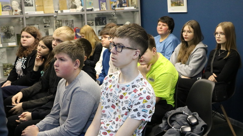 Ученики 7 «А» вместе с классным руководителем Павуць Екатериной Владимировной увидели музей, который 53 года назад родился в их родной школе. С такими же семиклассниками в 1971 году его организовала учительница русского языка и литературы Валентина Евгеньевна Кузнецова, и назывался он сначала «Есенинская комната».