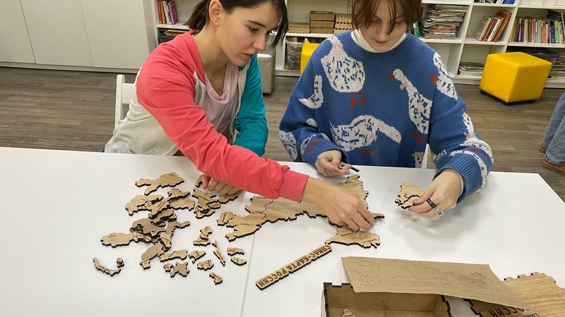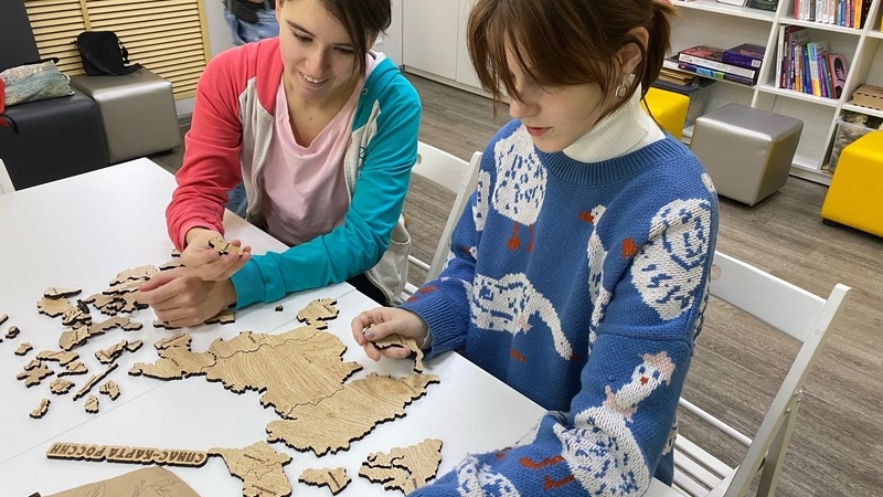 В начале встречи посетители узнали принцип составления карты для того, чтобы быстрее справиться с задачей. Территориально Российская Федерация состоит из 85 субъектов различных по площади, но начинать сборку карты необходимо с самого большого пазла, обозначающего самый большой субъект России – республику Саха (Якутия). Норматив сборки карты – 10 минут. Проявив упорство, внимательность и усидчивость участники обязательно в будущем покажут отличный результат.