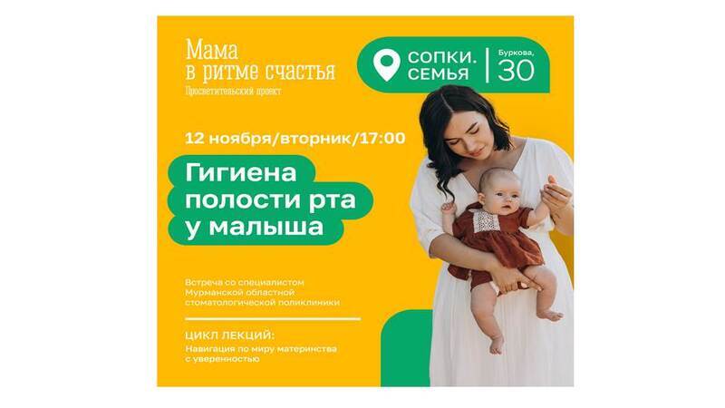 Лекция просветительского проекта «Мама в ритме счастья. Навигация по миру материнства с уверенностью» будет посвящена вопросам гигиены полости рта у малыша. Встречу проведет специалист Мурманской областной стоматологической поликлиники.