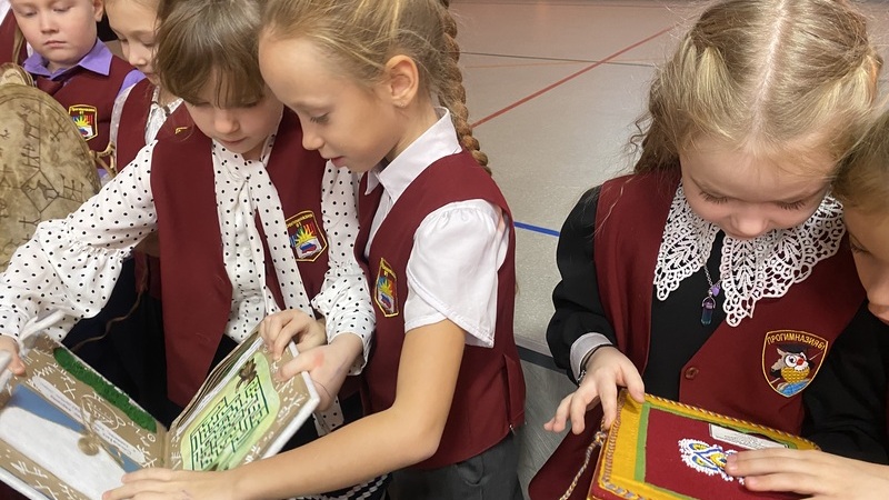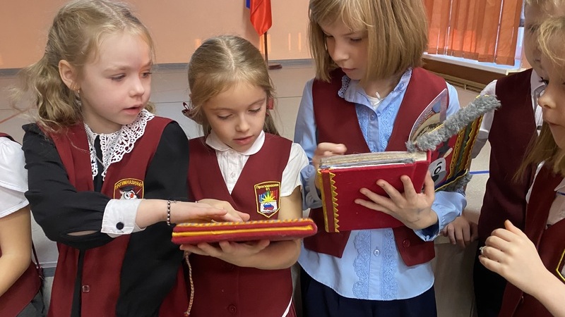 Первоклашки с большим интересом рассматривали книги, созданные участниками Международного конкурса детской рукописной книги в номинации «Мой сильный маленький народ», которые поразили всех своим разнообразием, красочностью, различными техниками исполнения.
