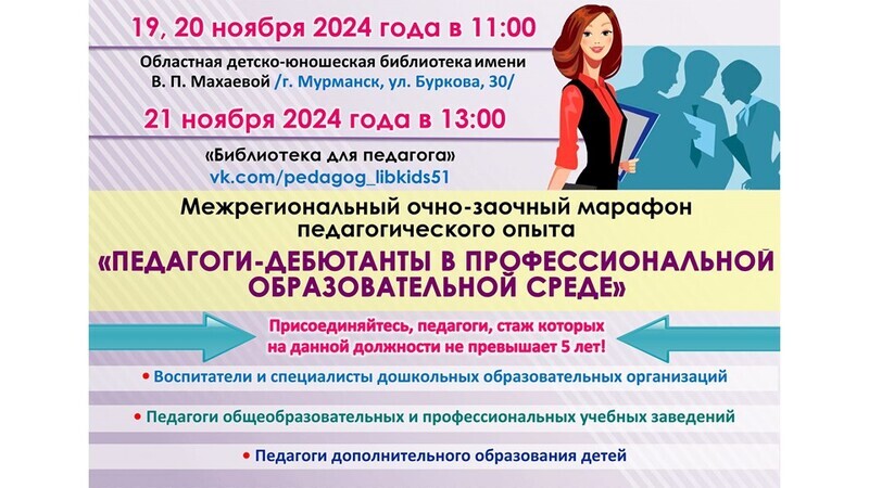 В заочной форме марафон начнет работу 21 ноября 13:00 в группе «Библиотека для педагога» в социальной сети «ВКонтакте».