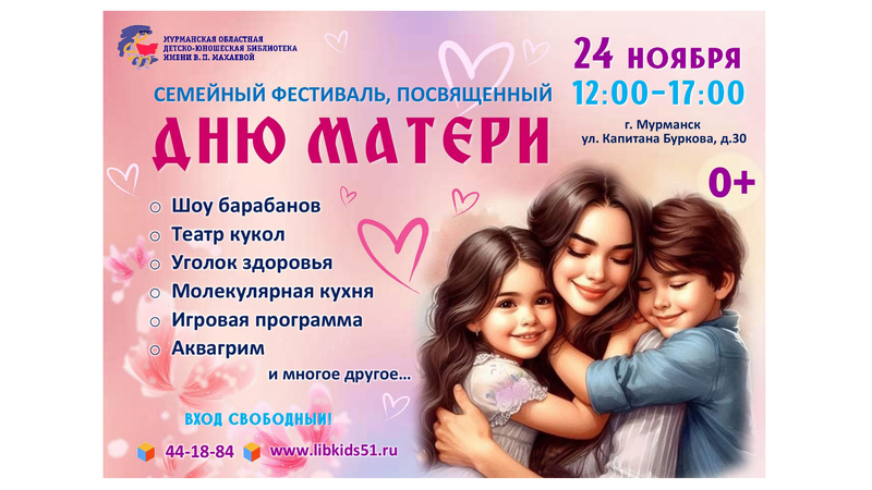 Специально к этому дню мы подготовили насыщенную праздничную программу, которая понравится и взрослым и детям. Свою любовь к самому дорогому человеку читатели смогут выразить, изготовив подарки своими руками на многочисленных творческих мастер-классах. Их с большой заботой и любовью разработали и проведут сотрудники библиотеки.