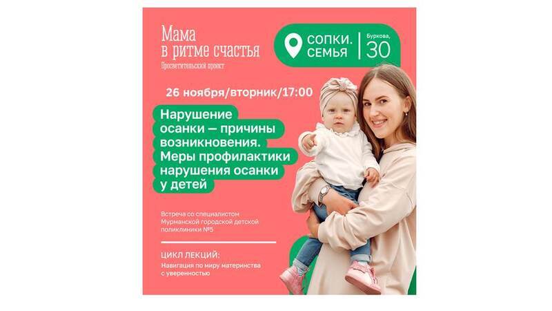 26 ноября в 17:00 в пространстве СОПКИ.СЕМЬЯ будет проходить встреча в цикле лекций для молодых семей со специалистом Мурманской городской поликлиники № 5