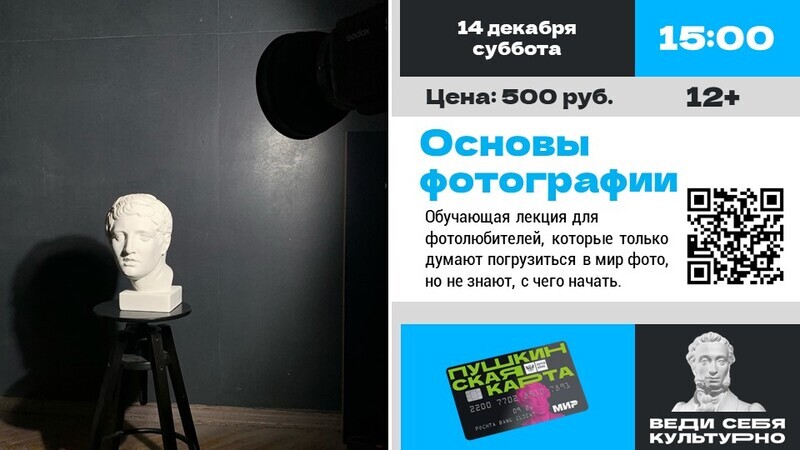 Участники познакомятся с понятием «экспозиция», разберут отличия режимов съемки и научатся работать в ручном режиме. Специалист поможет понять, что такое «выдержка», «ИСО», «диафрагма», «баланс белого» и почему лучше RAW-формат. В конце лекции слушатели точно перестанут бояться камеры и смогут начать фотографировать.