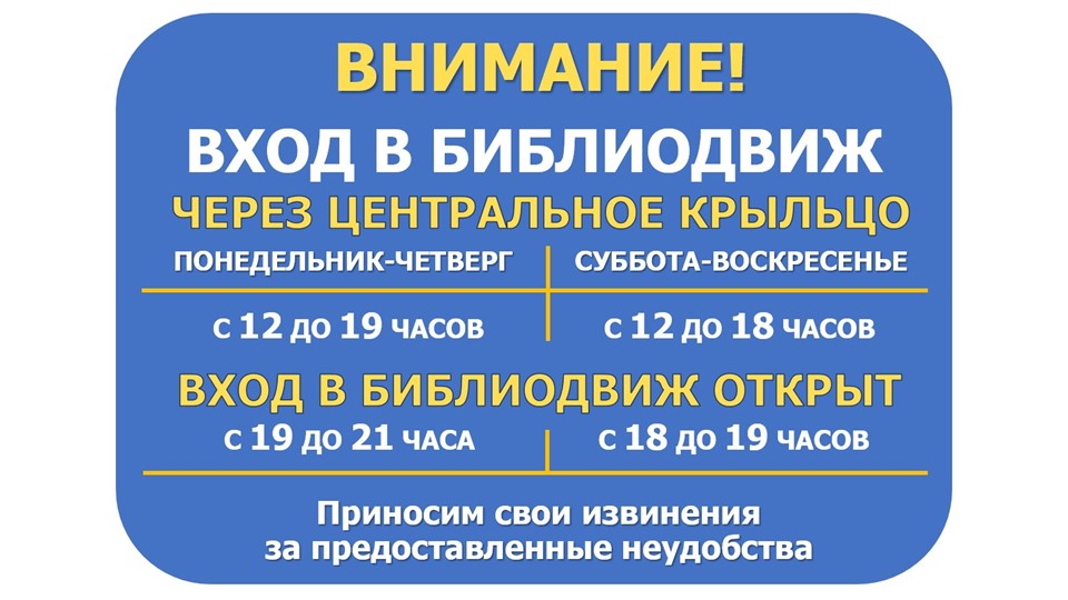 Обращаем внимание читателей, с 1 декабря вход в молодежный центр «БиблиоДвиж» осуществляется следующим образом: