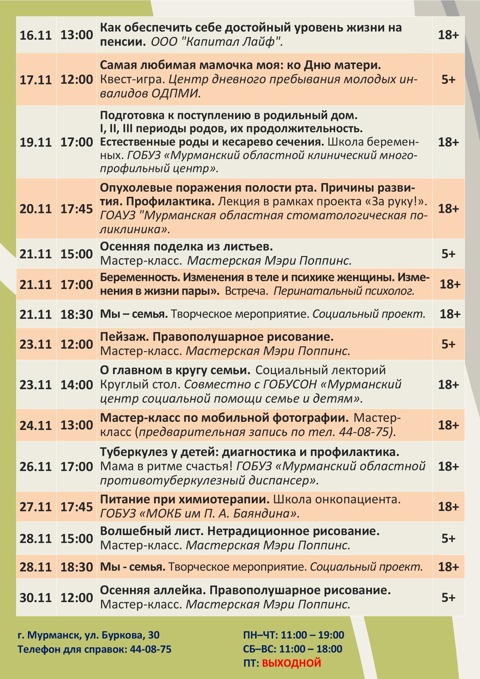 Обращаем внимание читателей – на мастер-классы и некоторые мероприятия необходима предварительная запись. В программе возможны изменения! Уточняйте, пожалуйста, информацию по указанному в афише телефону.