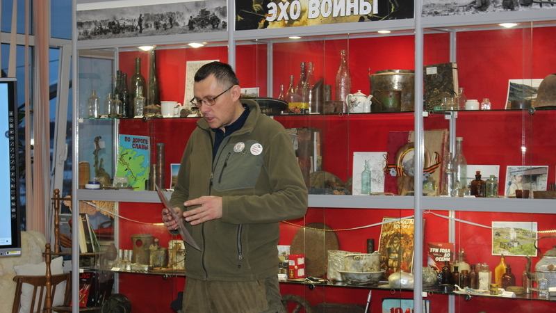 О поисковой деятельности, специфике работы, о полевых экспедициях, главная цель которых поиск и идентификация останков павших воинов в ходе Великой Отечественной войны, рассказал Сергей Тришин. Командир «Поискового отряда имени капитана Юневича А. Я.» продемонстрировал участникам встречи архивные документы, помогающие поисковикам в работе, специализированное оборудование, которое используется в походах и показал, как правильно им пользоваться.