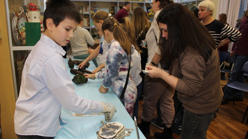 Роман Исидоров, боец отряда «Долина» представил одни из самых частых находок на полях сражений – оружие и боеприпасы. Юный боец «Долины» Арсений, который вместе с родителями Татьяной и Святославом Басинских участвует в экспедициях, рассказал о личных вещах, бытовых предметах, обнаруженных в ходе поисковой деятельности.