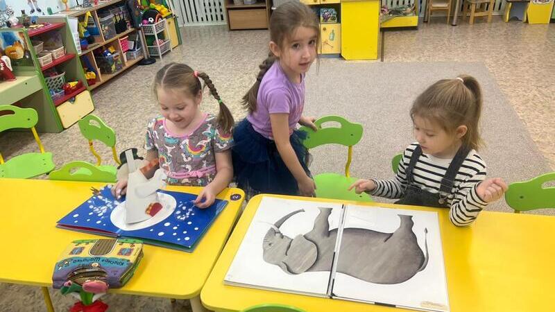 Дошколятам были представлены самые удивительные и необыкновенные книги с тактильными вставками, музыкальными и игровыми модулями, книги – конструкторы, театры, книги-вырубки и «шуршалки». Ребята с удовольствием играли с книжками, гладили шерстку львицы, с интересом разглядывали динозавров, познакомились с белым медвежонком, узнали, кто такие живевоты, удивлялись морскими животными, которые выходили за обложку книги, и слушали таинственные звуки океана. А еще весело играли с книжкой «Угадай, кто?», превращаясь в забавных и милых домашних питомцев.
