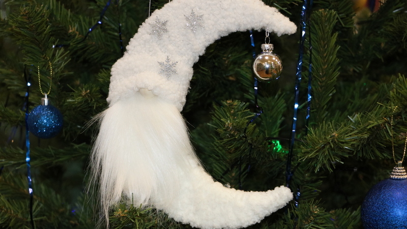 Заготовку сделаем из картона, для обмотки будем использовать плюшевую пряжу и искусственный мех. Проявив фантазию, из самых разных декоративных элементов: шаров, снежинок, еловых лапок сделаем украшение.