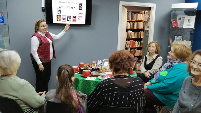 Сотрудник центра краеведения и страноведения Татьяна Александровна Володина познакомила членов клуба с жизнью и творчеством знаменитой английской писательницы. А затем руководитель Музея С.А. Есенина представила присутствующим детективные романы Е. Парнова, С. Бьорка, С. Фитцека, И. Хмелевской, Дж. Карра, Э. Раскин, Ф. Джеймс, А. Хейли и другие. Следуя за авторами, читатели решают головоломки, ищут преступников, но в итоге злодеи всегда наказаны и справедливость восстановлена. Встреча получилась очень интригующей!