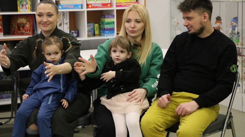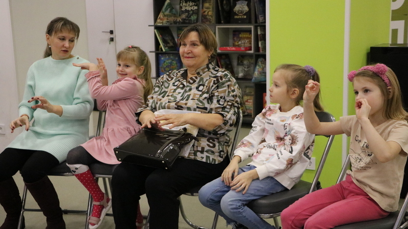 Приглашая в гости зимнюю сказку из волшебного сундучка, ребята вместе с мамами, папами и бабушками отгадывали загадки, рассматривали картинки в книжке-панораме, дружно произносили волшебные слова и хлопали в ладоши. Слушая добрую историю Сергея Козлова «Как Ёжик, Ослик и Медвежонок встречали Новый год», малыши рисовали в воздухе и представляли, как в лесу идёт белый пушистый снег, намело большие сугробы, стоят ёлочки-красавицы, а на вечернем небе ярко сияют звёзды.