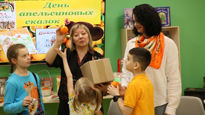 На мероприятии ребята и взрослые узнали много нового об апельсине и его братьях, познакомились с итальянской сказкой «Три апельсина» и приняли активное участие в играх и весёлых розыгрышах. Дети с удовольствием сажали зёрнышки апельсина, собирали урожай с «апельсиновой» ёлки, делили оранжевый фрукт на дольки и даже кормили Чебурашку.