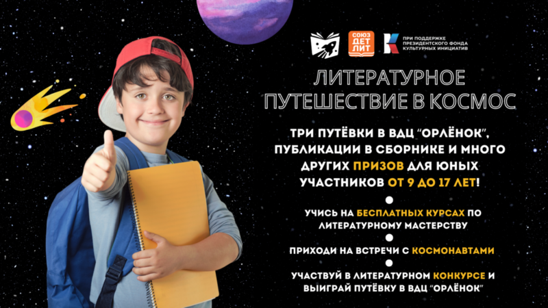 Союз детских и юношеских писателей приглашает детей и подростков принять участие в Всероссийском литературном конкурсе «Литературное путешествие в космос», который стартует 4 февраля 2025 года