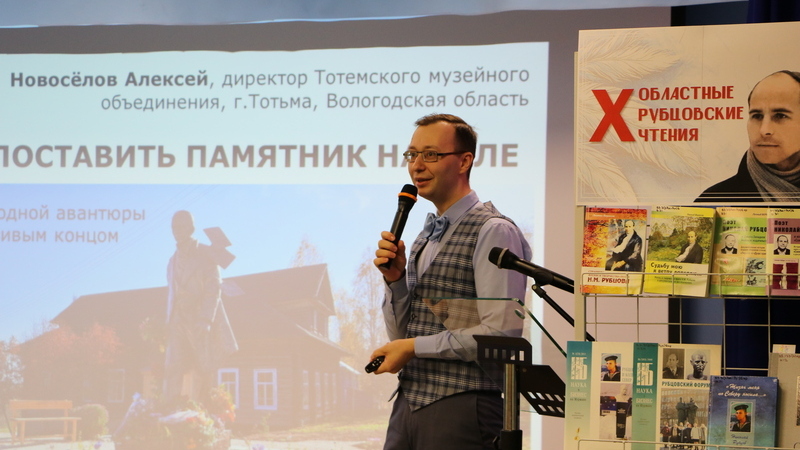 Впервые на Чтениях-2025 присутствовали Алексей Михайлович Новоселов, директор Тотемского музейного объединения, и Галина Алексеевна Мартюкова, заведующая мемориальным комплексом Николая Рубцова в селе Никольское. Они рассказали, как сохраняется рубцовское наследие на Вологодской земле, какие новые памятники поэту установлены, и реализованы проекты по сохранению памяти поэта на его родине.