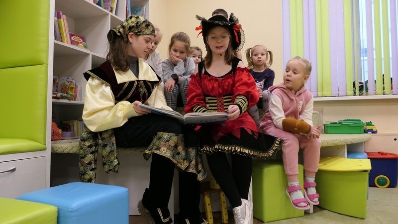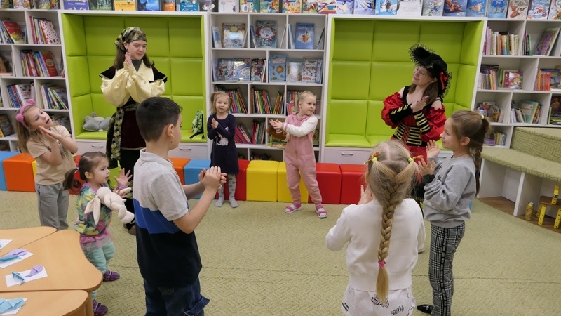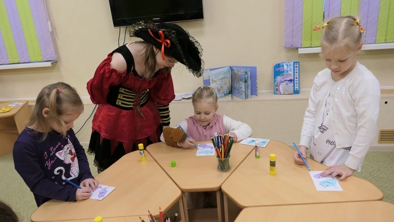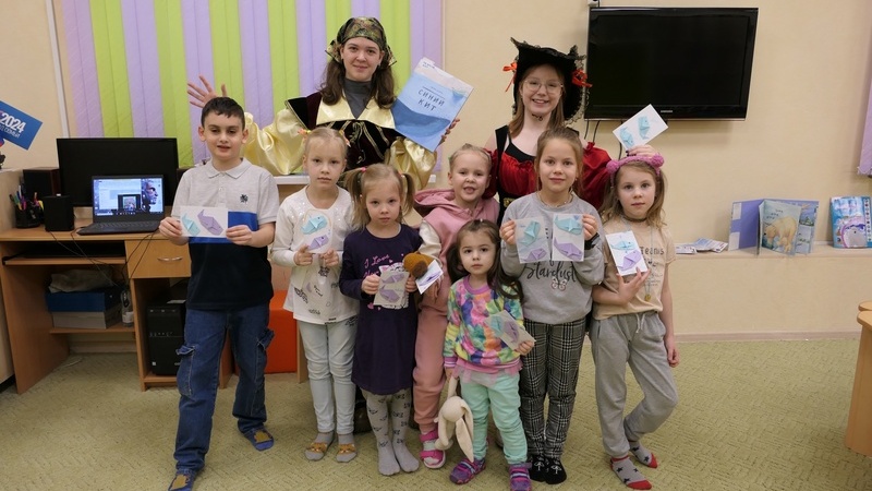 Сотрудники и волонтеры библиотеки подготовили увлекательное занятие, в ходе которого морские пираты вместе с детьми совершили морскую прогулку. Ребята разучили забавный танец китят, а также узнали много интересных фактов о синих китах. С огромным интересом и вниманием юные читатели слушали отрывки из книги Дженни Десмонд «Синий кит», а затем отвечали на вопросы викторины. Продолжилась программа творческим мастер-классом по созданию объемной открытки с изображением кита.