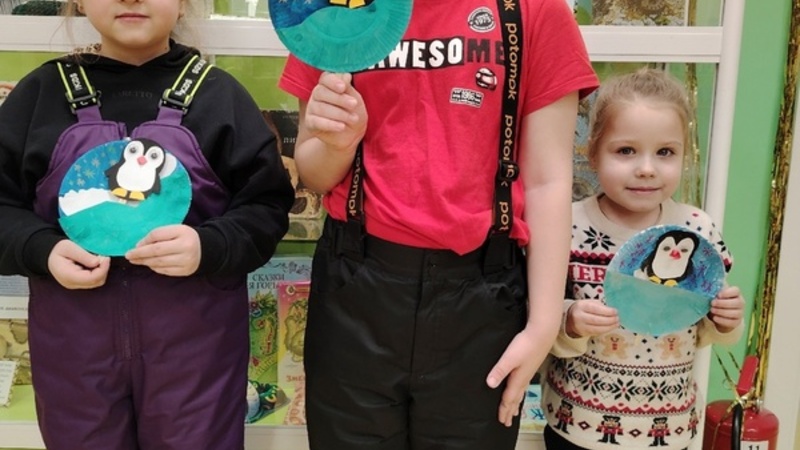 В субботу ребята узнали много нового о пингвинах и познакомились с интересными книгами «Я – пингвин» и «Пингвикинги. Кто украл шлем?!». А потом смастерили забавного пингвиненка Пина из картонной тарелки, палочек для мороженого и цветной бумаги! Получившуюся забавную игрушку раскрасили акварельными красками и фломастерами.