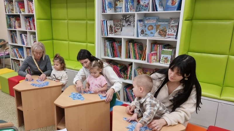 Маленькие читатели вместе с родителями слушали стихи о зиме и ее проявлениях, отгадывали зимние загадки, открывая окошки в книжках. Ребята узнали, как образуются снежинки. Дети активно участвовали в веселых играх  «Найди похожие снежинки» и «Поймай снежинки». Вместе с родителями складывали пазлы «Снежинка» и даже смогли собрать снеговичков! Время чудесных зимних чтений и забав прошло незаметно…