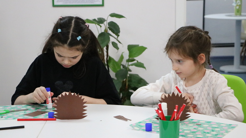 Для чтения выбрали рассказы «Ёж» и «Ежовые рукавицы» – и не случайно, ведь 2 февраля отмечается Международный день ежа. Участники встречи обсудили повадки ежей, задумались над выражением «держать в ежовых рукавицах». Затем ребята смастерили героя рассказов из картонных втулок и цветной бумаги.
