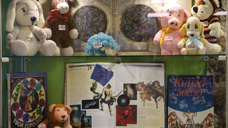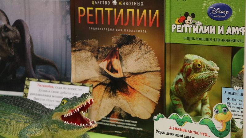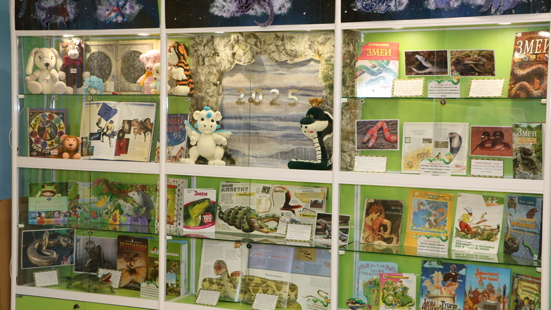 В отделе детского чтения оформлена выставка-витрина, посвященная символу года. Здесь вы найдете не только книги о змеях, но и интересные сведения о близких родственниках – рептилиях. Отдельный блок посвящен гороскопу, звездам и созвездиям. Размещены и художественные произведения, в которых героями являются эти экзотические животные.