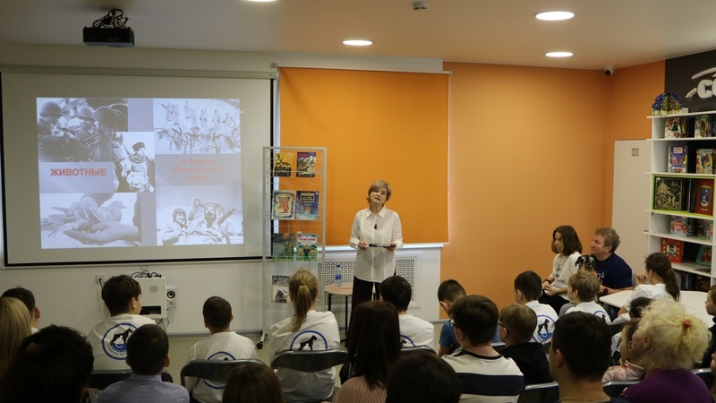 В пространстве СОПКИ.СЕМЬЯ для посетителей прошел литературно-познавательный час «Они сражались также, как солдаты». Собравшимся рассказали о четвероногих и крылатых бойцах, которые наравне с людьми участвовали в опаснейших военных операциях, доставляли важные грузы, работали минёрами и разведчиками, связистами и санитарами. Никого не оставил равнодушным клип «Собакам СВО посвящается» – многие украдкой вытирали слезы.