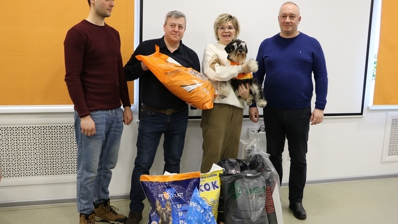 Сотрудники Отделения Банка России по Мурманской области и Нахимовского полевого учреждения Центрального банка Российской Федерации передали 17 мешков сухого корма для собак, поддерживающих наших солдат на передовой в зоне СВО.