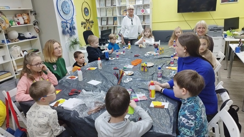 С помощью кусочков фетра и цветных фломастеров участники изготовили замечательные яркие открытки, которые будут напоминать им о радости совместного творчества в кругу близких людей и прекрасных сказках великого поэта.
