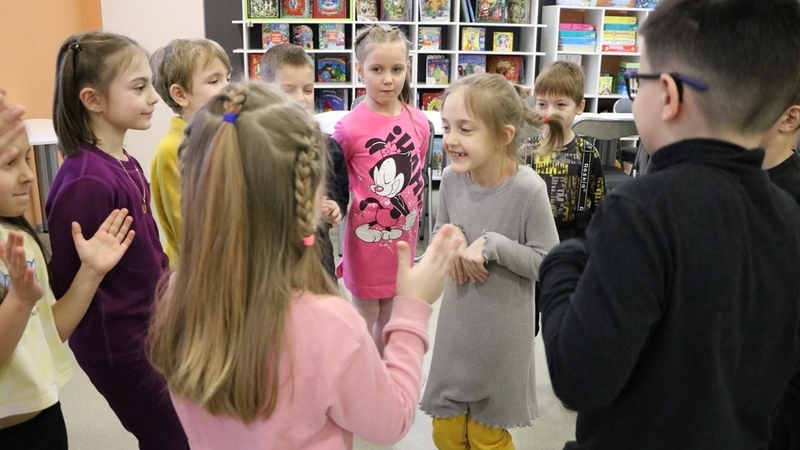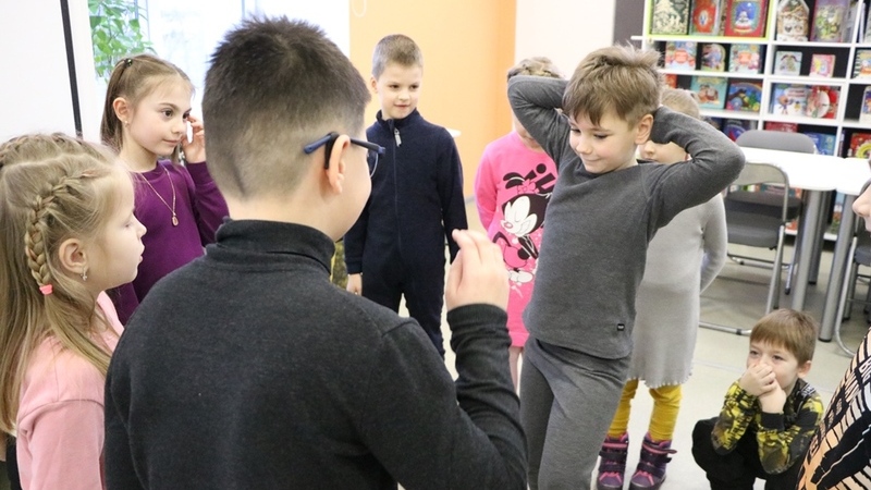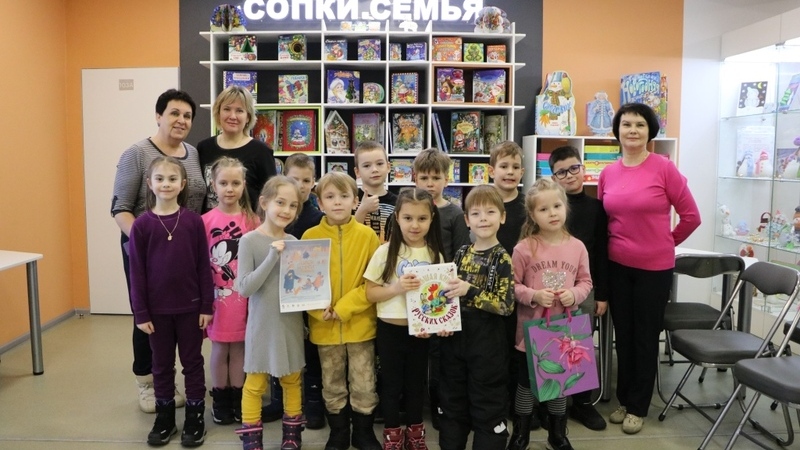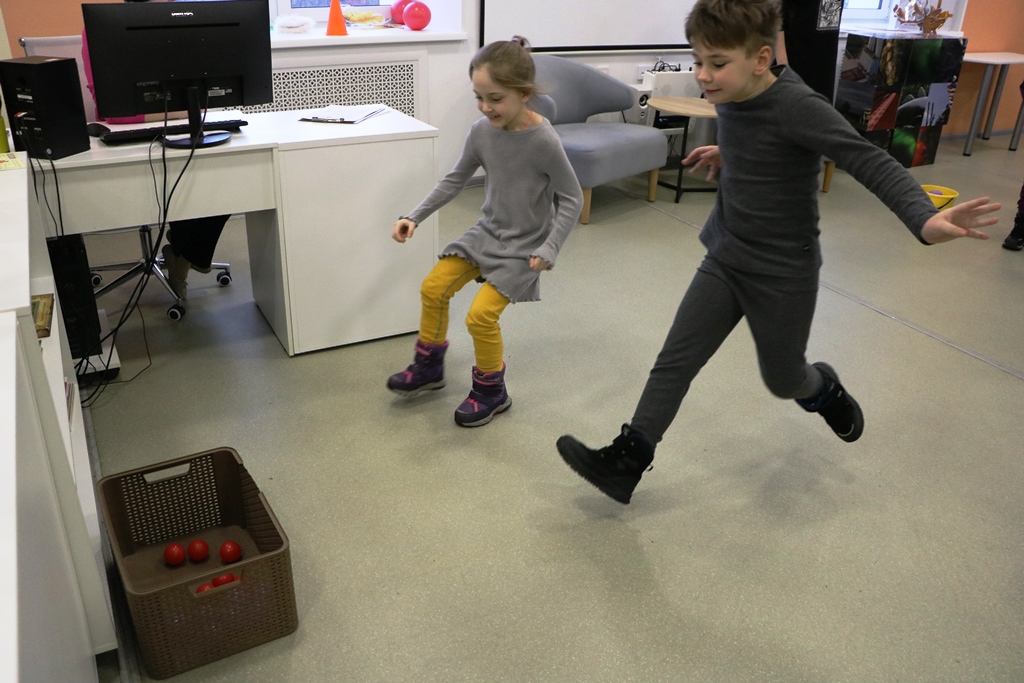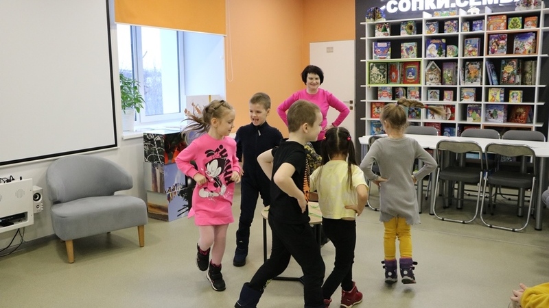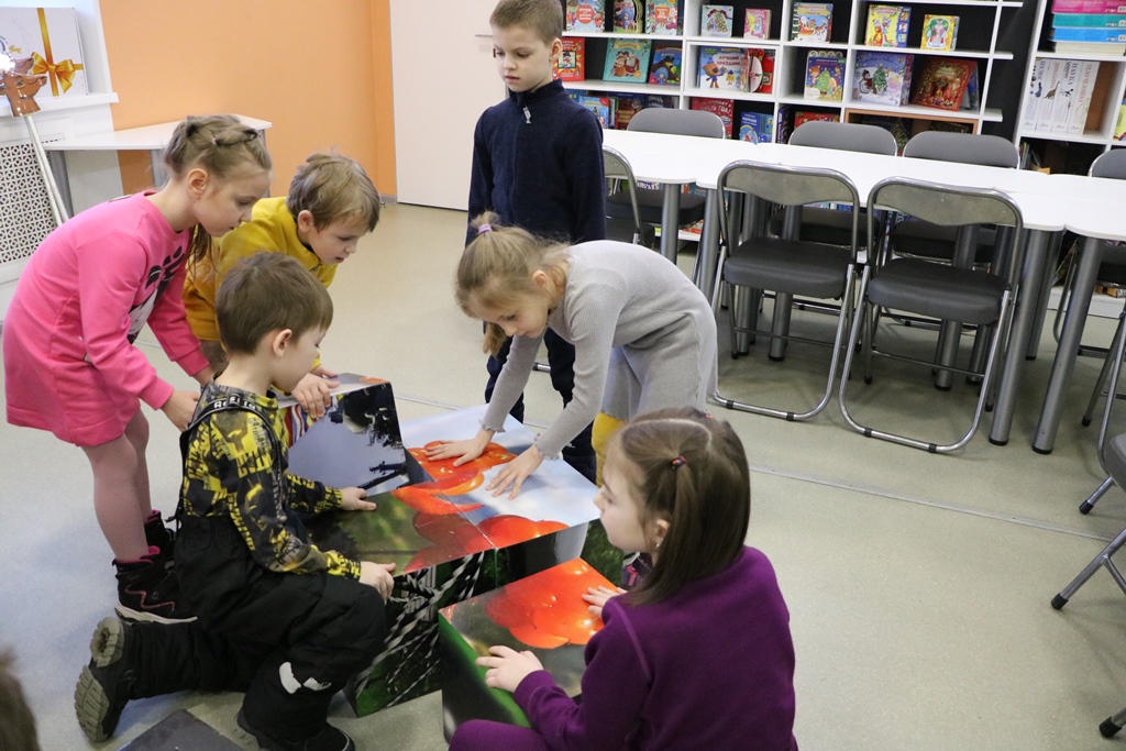 Проявили сообразительность, творчество и командный дух, собирая ягоду морошку из больших кубиков.