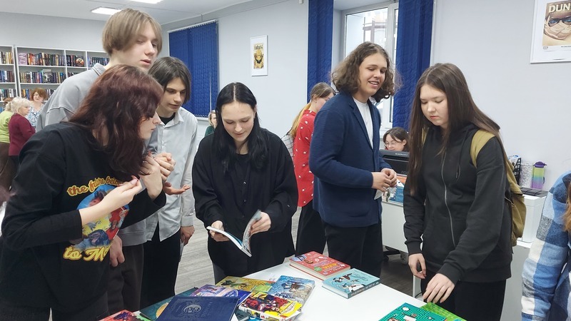 Акция – не просто передача книг, а настоящий праздник. Гости и дарители с удовольствием приняли участие в викторине и мастер-классах. Сотрудники Медиатеки предложили школьникам сделать книжную закладку с использованием природных материалов представителей флоры Кольского полуострова. Были представлены кукушкин лен, морошка, карликовая береза, вереск, листья брусники и черники.