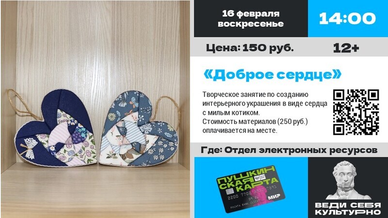 Количество мест ограничено. Материалы для работы оплачиваются отдельно. Их стоимость – 250 рублей. Оплатить можно в библиотеке любым удобным способом.