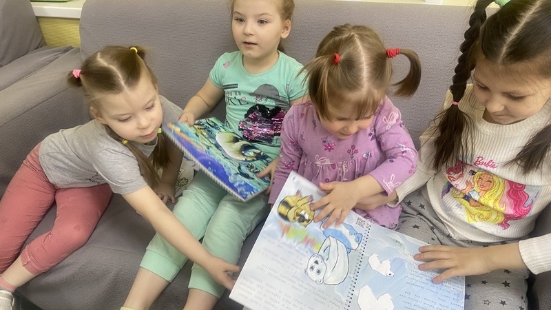 Ребята внимательно слушали сказку, активно отвечали на вопросы библиотекаря и с большим удовольствием разглядывали рукописные книги о зиме участников Международного конкурса детской рукописной книги.