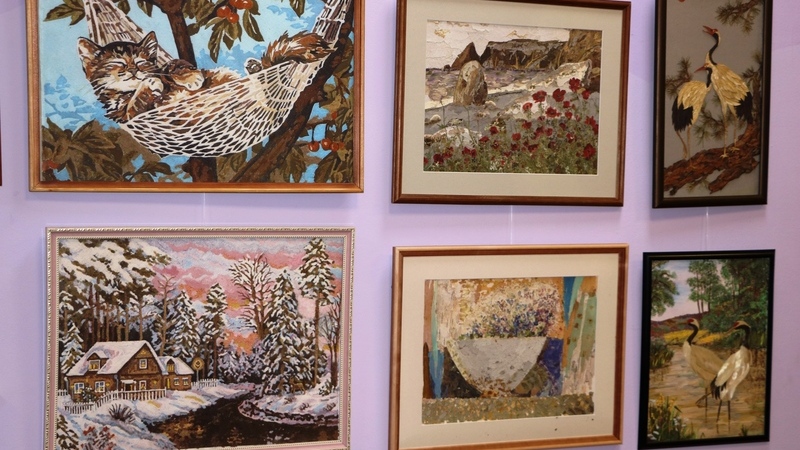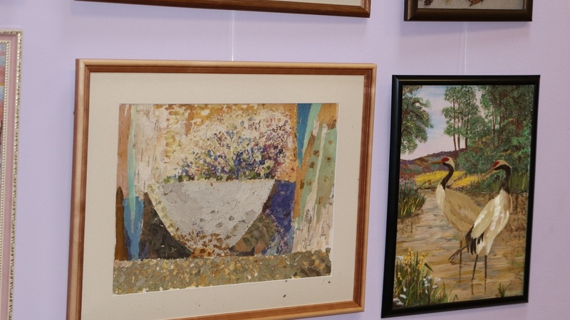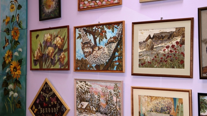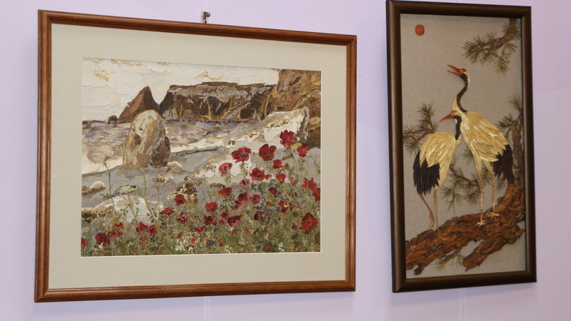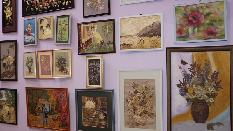 На ней представлено более 50 уникальных творческих работ участников клуба флористов «Белозор» Дома ремёсел Мурманского областного художественного музея.