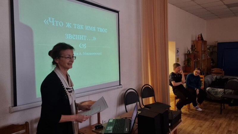 На этот раз слушатели познакомились с судьбой Августы Леонидовны Миклашевской, музы Сергея Есенина, и посвященными ей произведениями поэта. Лекцию о судьбе этой замечательной женщины, актрисы Московского Камерного театра, вдохновившей Сергея Есенина на создание цикла стихотворений «Любовь хулигана», подготовила руководитель Музея С.А. Есенина Габриелян Марина Геннадьевна. На встрече прозвучали песни на стихи поэта, посвященные Августе Миклашевской, в исполнении Юрия Гуляева, Александра Малинина, Сергея Любавина. Фотографии, иллюстрирующие рассказ, помогли слушателям познакомиться с многообразием ролей, с блеском исполненных талантливой артисткой. Также были представлены книги, рассказывающие об Августе Миклашевской: воспоминания ее сестры Александры Спировой «Принцесса Брамбилла и поэт», романы Аркадия Ваксберга «Театральный детектив» и Константина Кешина «Любовь хулигана».