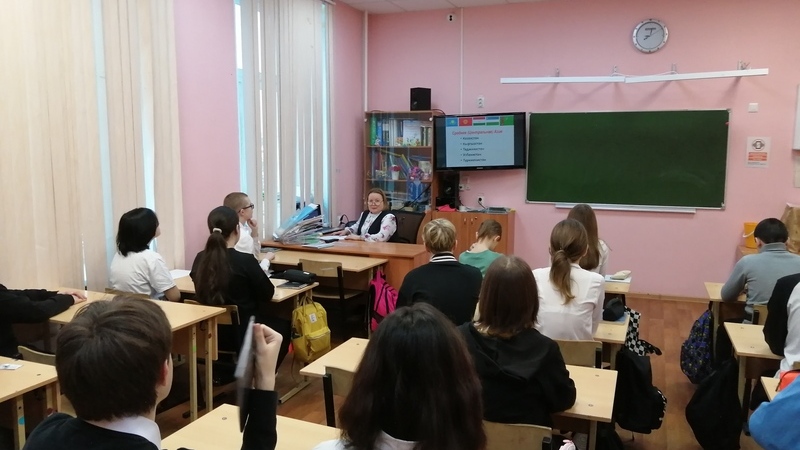 Сегодня библиотекарь центра краеведения и страноведения отправилась к ребятам 7 класса школы №34 на очередную встречу в рамках совместного проекта «Вместе дружная страна!». На этот раз говорили о странах Центральной Азии: Казахстане, Кыргызстане, Таджикистане, Туркменистане и Узбекистане. Ребята познакомились с историей и символами этих государств, с их культурой и традициями. Удивление вызвали великие имена, значимые достижения науки и выдающиеся произведения литературы древней таджикско-узбекской цивилизации. Школьники послушали мудрые четверостишия знаменитого таджика Омара Хайяма, а в конце встречи ответили на вопросы викторины.