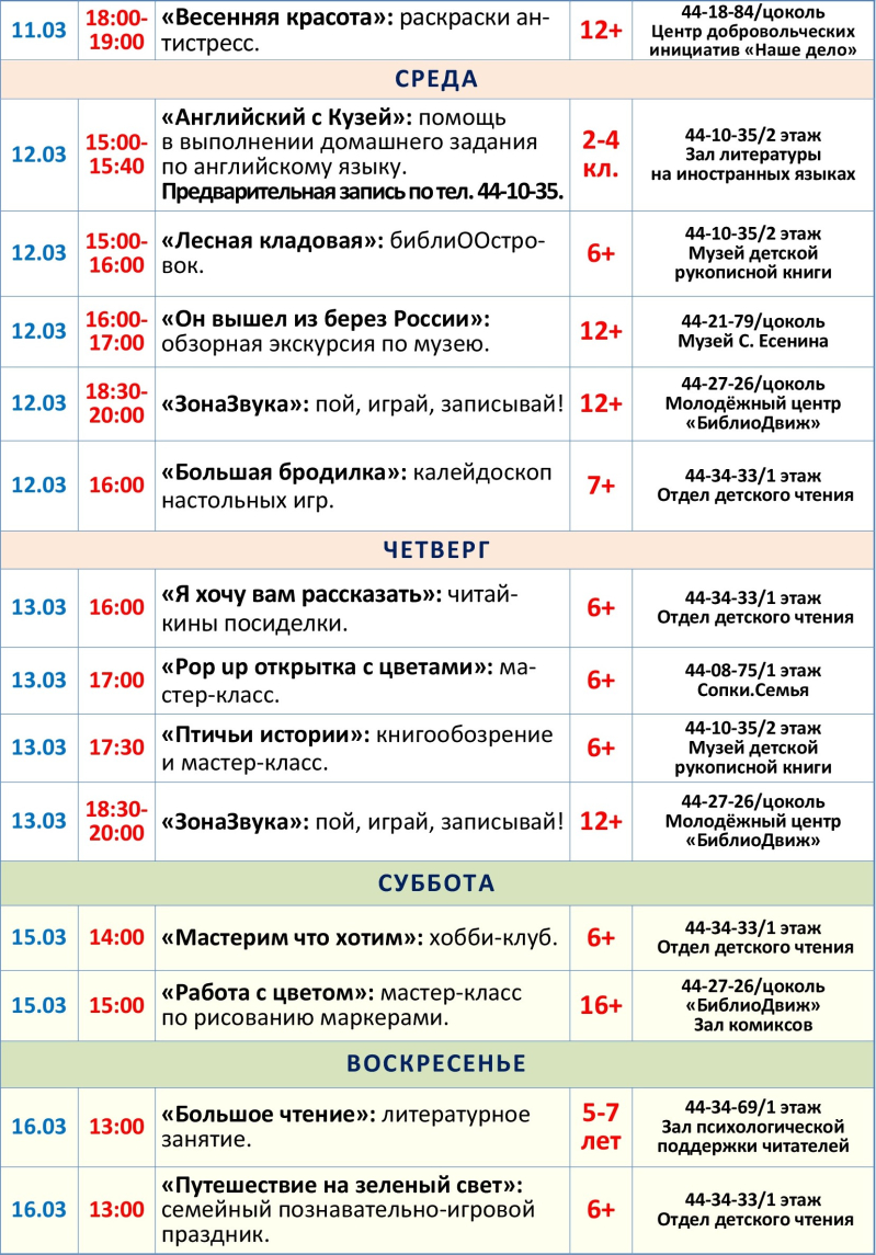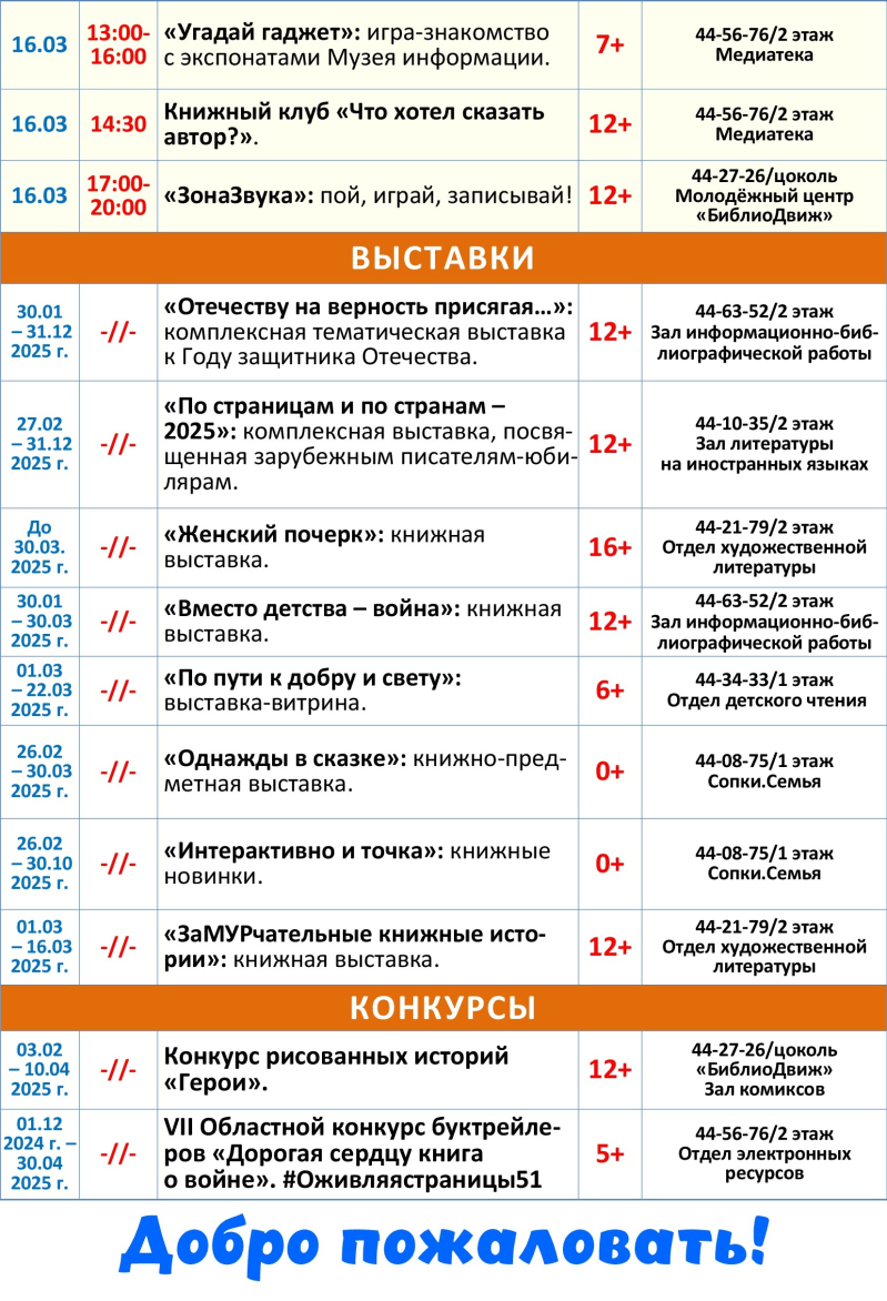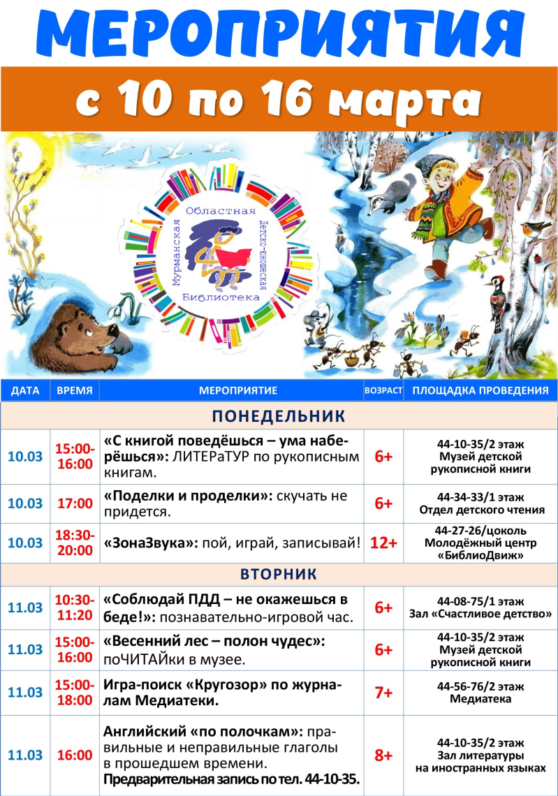 Знакомим с афишей мероприятий, которые подготовила для вас областная детско-юношеская библиотека с 10 марта по 16 марта
