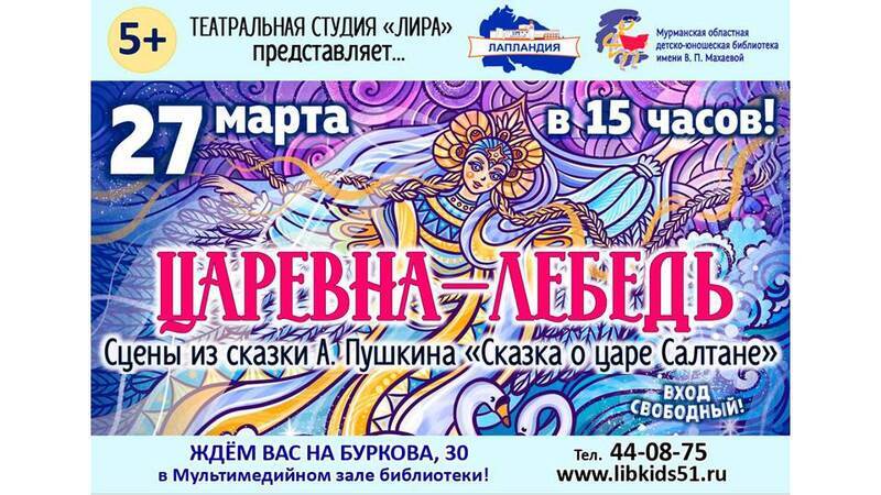 Для зрителей юные артисты из театральной студии «Лира» Центра образования «Лапландия» представят волшебный мир знаменитого пушкинского произведения «Сказка о царе Салтане…». На сцене библиотеки раскроется прекрасный образ Царевны Лебедь – доброй волшебницы, победившей зло, которая помогла восстановить справедливость и воссоединиться любимому князю Гвидону с его родным отцом.
