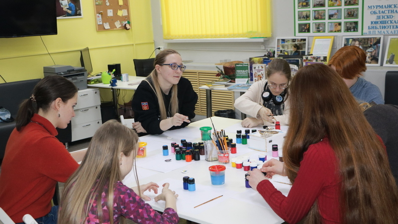 Продолжилась встреча увлекательным мастер-классом по созданию значков с изображением театральной маски. Читателям были предложены заготовки значков, акриловые краски и кисти. Каждый создал свой неповторимый значок, который стал ярким сувениром и напоминанием о волшебном мире театра. В подготовке и проведении мастер-класса большую помощь оказали волонтеры библиотеки.
