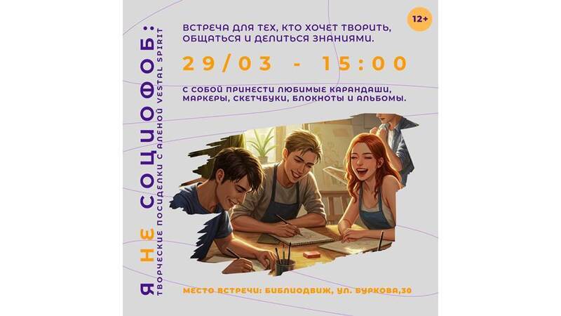 Хотите порисовать в приятной компании, готовы обменяться опытом и вдохновиться творчеством других? Тогда присоединяйтесь к нашей встрече в молодежном центре Библиодвиж.