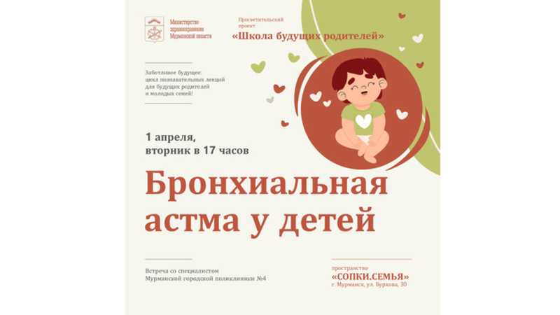 На этот раз лекция будет посвящена теме «Бронхиальная астма у детей». Специалист Мурманской городской поликлиники №4 расскажет о причинах возникновения бронхиальной астмы, основных симптомах и методах диагностики.